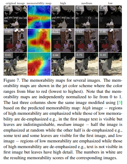 Application으론 이런 것들을 들고와봤는데, memorability map으로 어떤 부분이 더 기억하기 좋은부분이었는지, 인간의 인지 능력을 memorability와 연동하여 적용한 필터를 입히거나 인간의 인지와 연관있는 부분을 기억해 내는 것에 유용하게 쓰일 수 있어보인다.